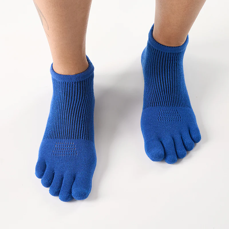 Five-toe separation reduces friction while natural merino fibers regulate moisture and odor.